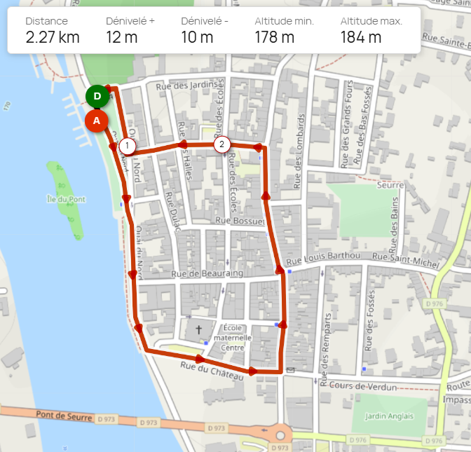 2 km (enfants nés de 2011 à 2014) : Seurre – Parcours course J2 |